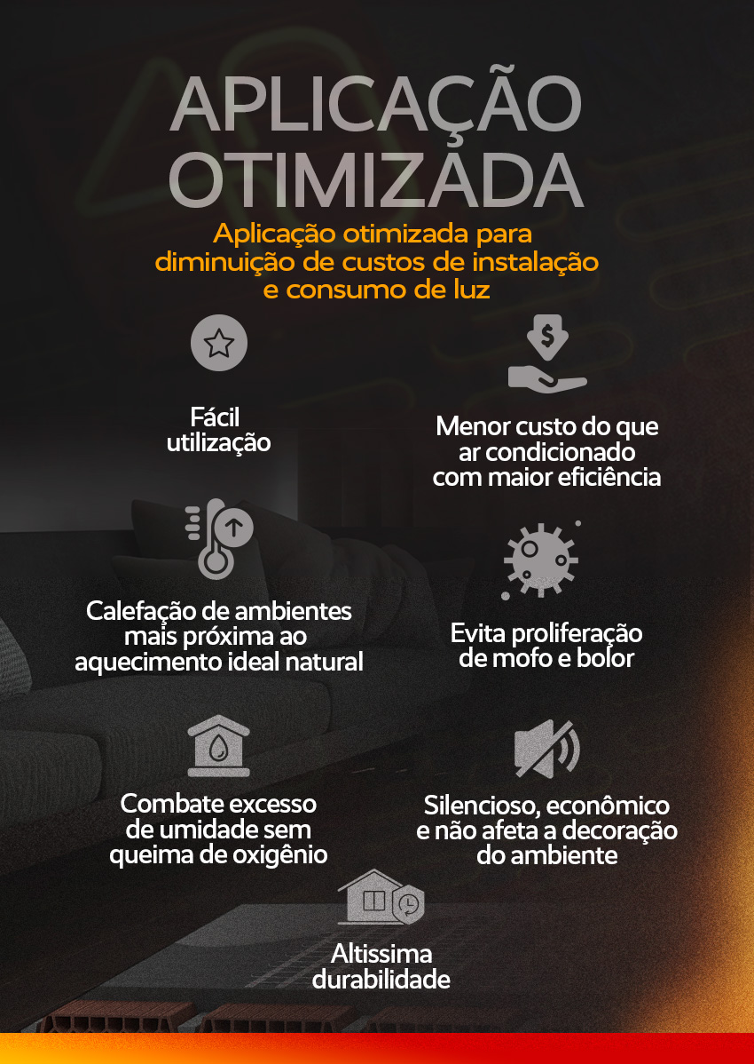 Operação Silenciosa e Econômica: Desfrute de um ambiente tranquilo, pois o piso térmico opera silenciosamente e de maneira eficiente, sem interferir na estética do seu espaço.