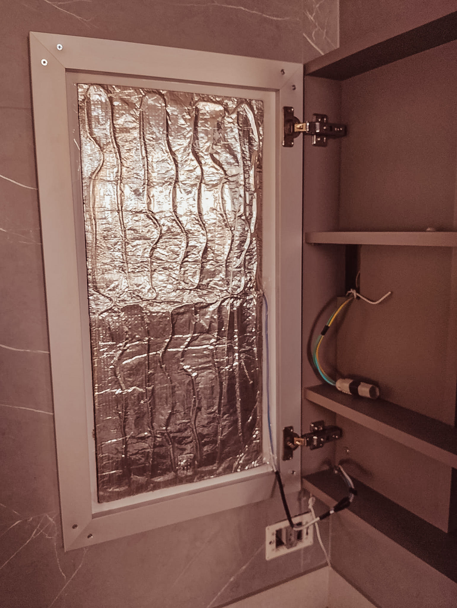 Aplicamos os cabos aquecedores na chapa de fundo de cada móvel e o cobrimos com o material de face metalizada para melhorar a distribuição de calor. Os projetos sempre são sob medida.