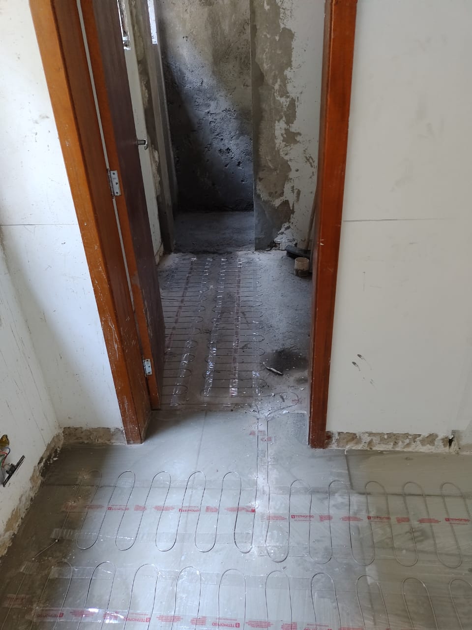 Foi realizado nesta obra a aplicação de mais de 40m⊃2; de piso aquecido.