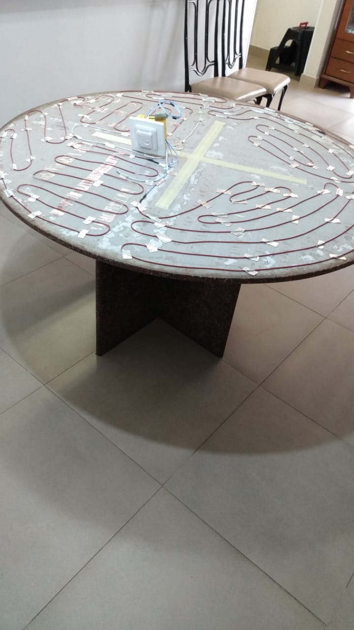 Além de termopiso, desenvolvemos projetos especiais personalizados para cada necessidade de nossos clientes. Este é um projeto que concluímos para aquecimento desta mesa de granito, possibilitando à família mais conforto à mesa.
