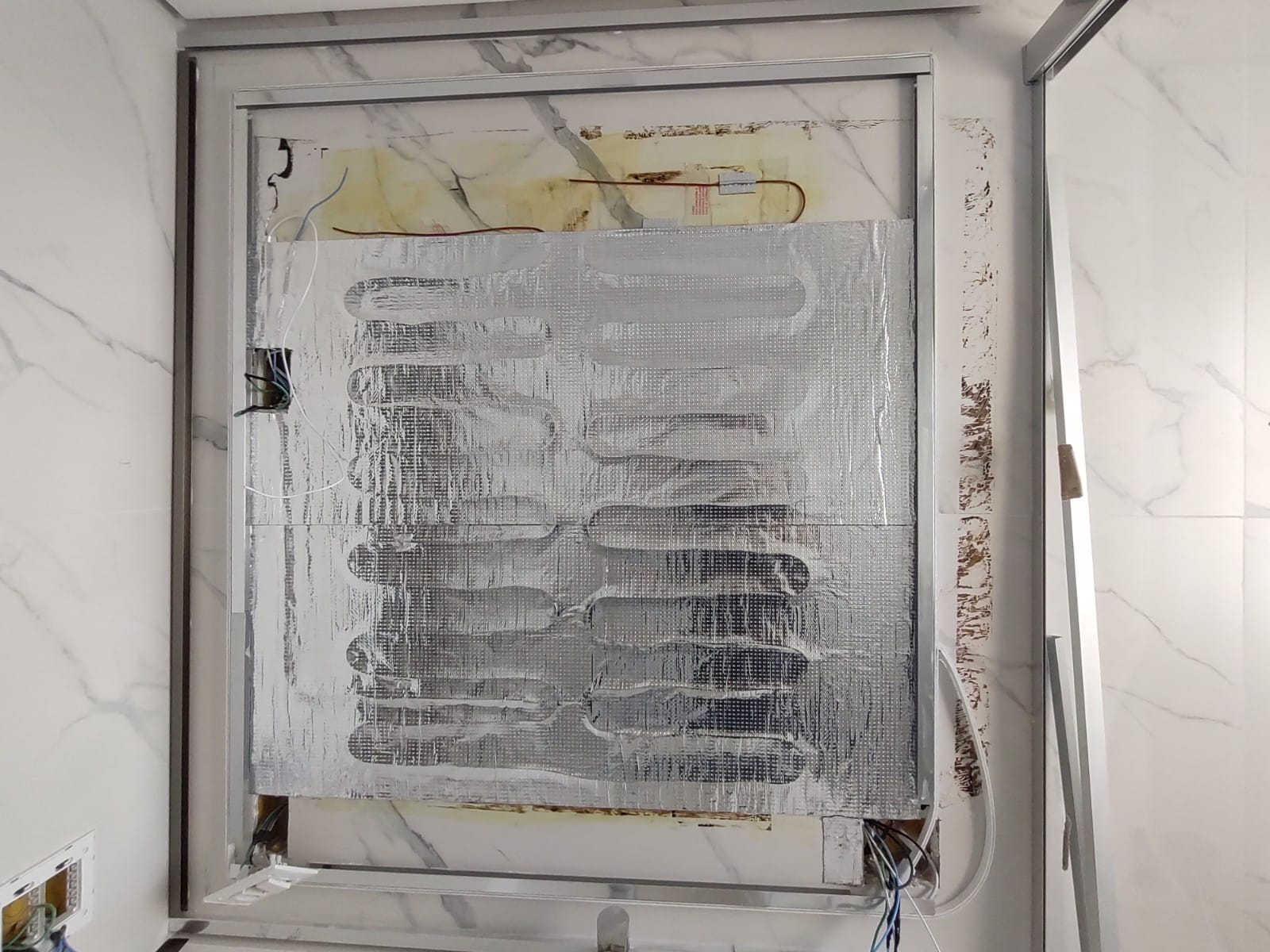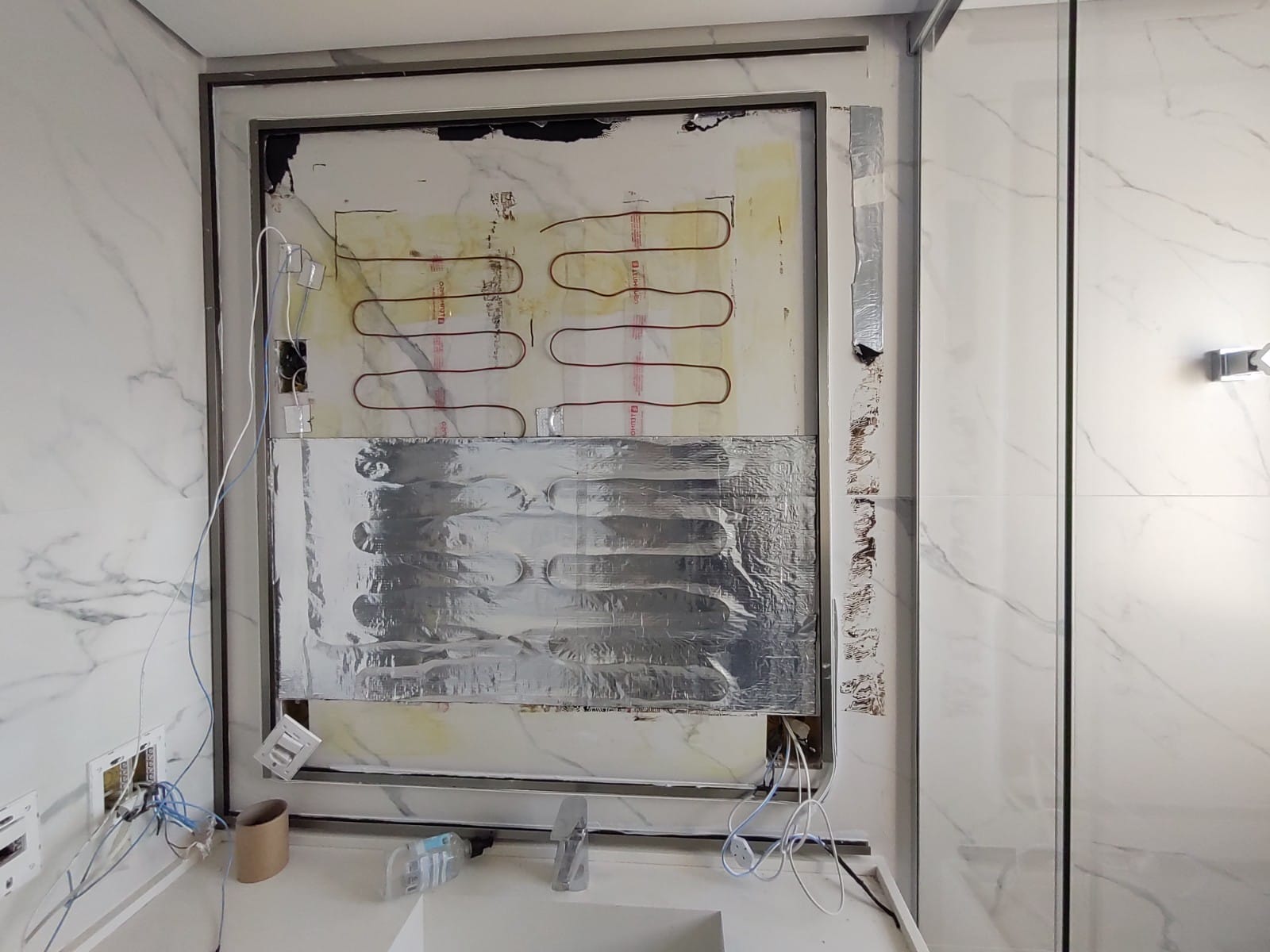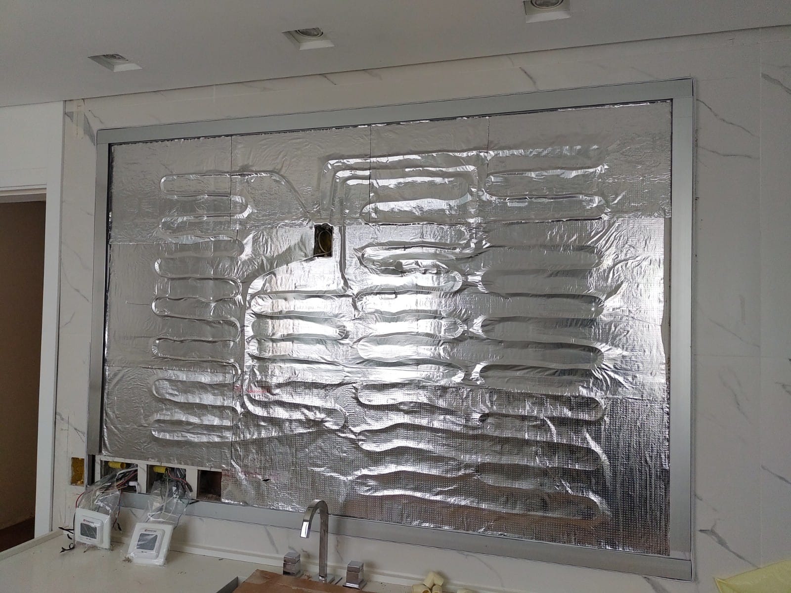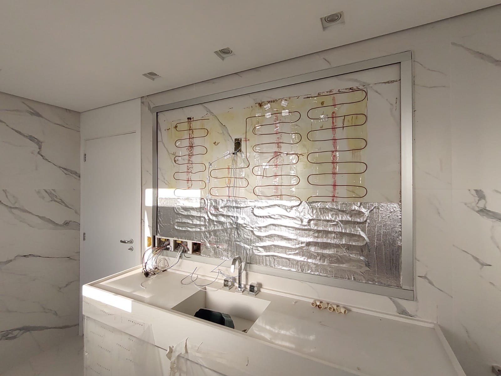 No total, foram aquecidos 21m⊃2;, entre piso e espelho, nos quatro banheiros.